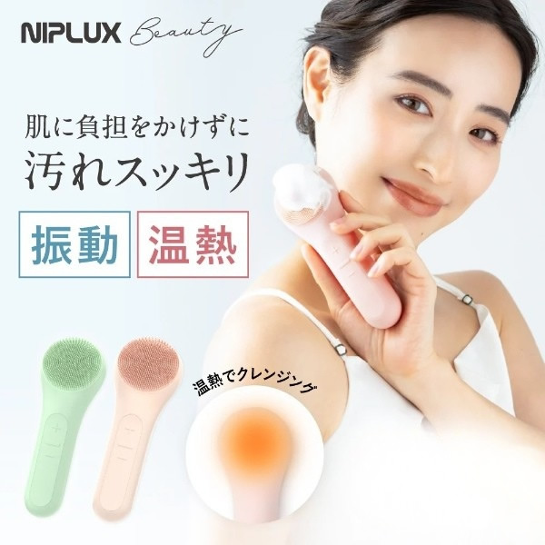 [予約]電動洗顔ブラシ NIPLUX BEAUTY PETIT CLEANSE 洗顔器 超音波振動 温熱機能 IPX7防水 プティクレンズ ワイヤレス充電 NP-PC21GN グリーン