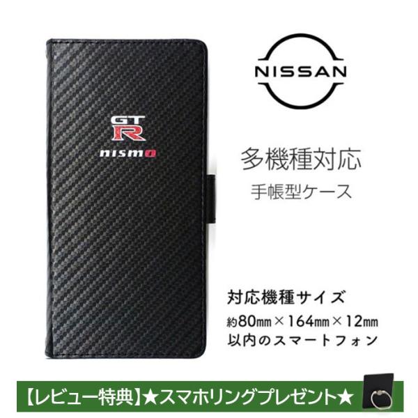 汎用 マルチ ケース NISSAN NISMO GT-R 手帳 カーボン レザー スマホケース カード Xperia aquos galaxy arrows pixel アンドロイド 日産 公式ライセンス品