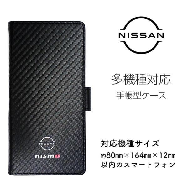 汎用 マルチ ケース NISSAN NISMO 手帳 カーボン レザー スマホケース カード Xperia aquos galaxy arrows pixel ケース アンドロイド 日産 公式ライセンス品
