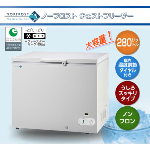 業務用 冷凍庫 業務用 冷凍庫 ノーフロスト 280リットル チェストフリーザー JH280CW