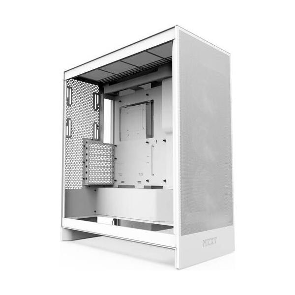 - 冷却性能を更に高めたH7 Flow 新モデル発熱量の大きい最新CPU、GPUに対応するため、シンプルで美しいデザインはそのままに、冷却能力が大幅に向上。PSUを垂直配置にする事により、ケース底面に最大360mmのファンスペースを確保しました。デュアルチャンバーのケースよりも横幅を抑えつつ、ケース内部の空間を最大限に確保する構造になっています。フロントには最大420mmまでのラジエーターが設置可能にになっております。■専用のGPU冷却PSUを垂直配置とする事でケース底面に最大360mmのファンスペースを確保。天面に取り付けるファンとの組み合わせで新たなエアフローを生み出し、GPUの直接冷却を実現します。■大型ラジエーターをサポートフロントに最大420mm、トップに最大360mm、リアに最大140mmのラジエータ取付をサポートします。■工具不要で組み立てやすいシステムフロント、トップ、サイドパネルが全てアタッチメント式になっており、取り付け、取り外しに工具が不要で内部へのアクセスが簡単です。背面にはケーブル管理のための幅広チャンネル、内蔵フック、ストラップが備えられており、直感的なケーブルマネジメントを行う事が可能となっています。