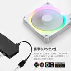1 つのヘッドは AER RGB または F シリーズ ファンに接続し、もう 1 つのヘッド コネクタはマザーボード ヘッダーまたは ARGB ハブに接続します。ASUS AURA、Gigabyte Fusion、MSI Mystic Light と互換性があります。