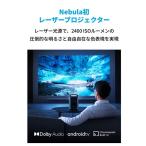 - 〇2400 ISOルーメン / 2000 ANSIルーメンの圧倒的な明るさ Nebula史上最高の輝度で、日差しが射し込む午前中や昼間でもカーテンを開けたまま 鮮やかな映像をお楽しみいただけます。 ※投影映像の明るさ / 鮮明さは周辺環境によって異なります。 〇レーザー光源ならではの自由自在な色表現 レーザー光源が実現する精緻な色の表現で、映像本来の美しさをそのまま映しだすことができます。 HDR10対応で、白はより明るく、黒はより深みのある色へ。 〇4Kの驚くほど深く美しい高精細映像 4K (3840 × 2160画素) だからこそ実現可能な、最大150インチの大画面でも細部まで クリアできめ細かな映像で、瞬きを忘れるほど極上の映像体験を。 〇最大150インチの大迫力映像 驚くほど大きく壁一面に映し出された映像で、Nebula史上最高のプライベートシアターに。 〇Dolbyオーディオ対応の立体音響 3Dサラウンド音響で、まるでその場にいるような音の響きをお楽しみください。 10Wの高出力スピーカー2基に加え、5Wのツイーターを2基搭載しているため、 低音だけでなく高音まで驚くほどクリアに響きます。 〇映像を邪魔しないグリッドレス自動台形補正機能 ご覧になっている映像を遮ることなく垂直・水平方向両方の調整が可能なグリッドレス台形補正機能を搭載。 瞬時にハンズフリーで手間をかけずに補正可能。 〇高速オートフォーカスですぐに透明感のある映像に シームレスな高速オートフォーカスで、起動後すぐにクリアな映像体験を。 煩わしい手動での調整は必要ありません。 〇便利なスクリーンフィット機能 スクリーンがある場合、センサーが自動でスクリーンを検知。 投影画面をスクリーンにフィットさせるため、面倒なマニュアル操作不要。 ※ご使用の際には、プロジェクター本体の「設定」ボタン、もしくはリモコンの「入力ソース」ボタンより 画像補正」「自動スクリーンフィット」の機能がオンになっており、スクリーンの四辺すべてが 投影画面に収まっていることを確認して下さい。スクリーンのいずれかの辺が投影画面に収まっていない場合はご使用いただけません。 〇驚きのコンパクトさ 4Kレーザープロジェクターとは思えないほどのコンパクトさ。 さらにハンドル付きで、家の中での持ち運びもスムーズに。 〇目に優しい安心のアイガード機能 誤ってプロジェクターの前を横切ってしまっても、自動で映像が暗くなるため小さいお子様のいる家庭でも安心してご使用いただけます。 〇7,000以上のアプリをワンタップで Android TV対応※。YouTubeやAmazon Prime Video、Disney+、U-NEXTなどの人気アプリをお楽しみいただけます。 リモコンにはYouTube、Netflix、Amazon Prime Video、Disney+のボタンがあるので、 ワンタップですぐにアプリをご使用いただけます。 ※付属の「Nebula 4K Streaming Dongle」を使用した場合 〇設置距離ごとの画面サイズ目安 60-150インチでの投影に対応しています。 〇サイズ: 約263 x 220※ x 165mm ※ハンドル部分を除く。 〇重 さ: 約4.9kg〇仕様・プロジェクター用途: 家庭用 ・投影方式: DLP ・解像度: 3,840 x 2,160 ・コントラスト比: 1500000:1 ・アスペクト比: 16 ・ワイヤレス規格: Wifi・Bluetooth ・対角サイズ: 60inch~150inch ・光 源: Laser ・スクリーンサイズ: 60-150 inch ・音声入出力: Bluetooth ・騒音レベル: 30db 事業者名:アンカー・ジャパン株式会社 PSマークの種類:PSE
