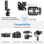 ・頑丈な素材:高精度のCNC技術を備えたアルミニウム合金製のプレートは軽量で耐腐食性があり、両側にある2ピースプレートは滑り止めの爪が付いており、クランプのU字型の溝と連動してカメラを保護できます。