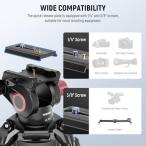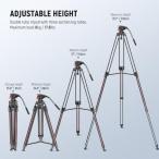 ・頑丈なアルミ合金製頑丈な三脚は、アルミ合金で作られ、8kgまでのDSLRカメラ、ビデオカメラ、その他の撮影機材をサポートします。各三脚の脚には、複数のチューブが接続され、安定性を高めます。ミッドレベルスプレッドレバーは、撮影三脚の脚を所定の位置に保ち、滑り止めの脚と組み合わせることでさらに安定性を高めます。