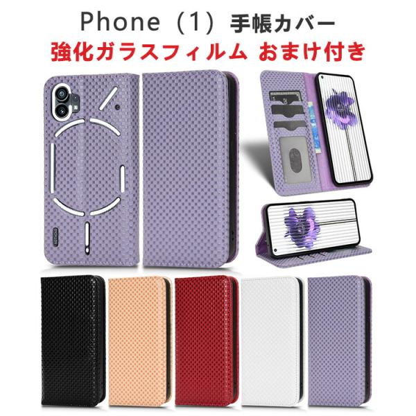 Nothing Phone (1) アンドロイド スマホ 保護 ケース 用の手帳型 スタンド機能 カード収納 便利性の高い ブック型 カッコいい 強化ガラスフィルム おまけ付き