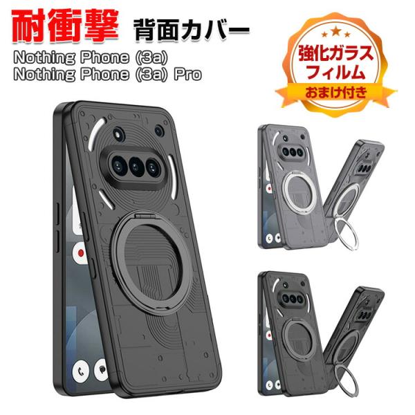 ナッシング フォン (3a) アンドロイド スマホ用の衝撃に強い PC素材 360°回転しスタンド 実用 人気 Nothing Phone (3a) Pro ケース CASE 強化ガラス付き