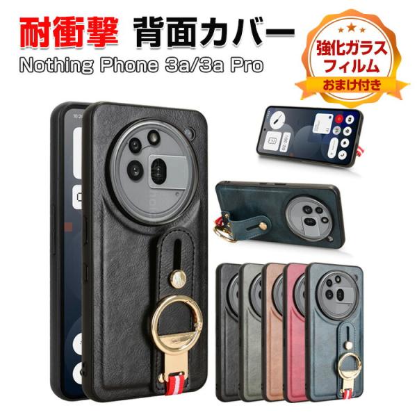 - ナッシング フォン3a Nothing Phone (3a) Nothing Phone (3a) Pro ケース 耐衝撃 カバー PU+PC+TPU素材 リストバンド付き 手触り抜群 衝撃吸収 落下防止 おしゃれ カッコいい 便利 実用 人気 衝撃に強い 背面カバー 保護 ケース 強化ガラスフィルム おまけ付き
