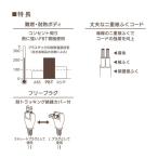 丈夫な二重被ふくコード:導線の二重被ふくでコードの強度を向上 フリープラグ:ストレートプラグ&Lプラグ両用、耐トラッキング絶縁カバー付 カラーは白
