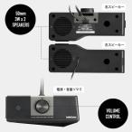 - 【特長】◆音の遅延が少ない有線接続(φ3.5mmステレオミニプラグ)◆PC接続(USBType-A)で家庭用電源不要&自動電源ON◆縦置き・横置き2WAYフリーレイアウト◆イルミネーションは3バリエーション+固定(赤・緑・青) 【仕様】◆電源:DC5V900mA◆実用最大出力:総合6W(3W+3W)◆周波数特性:150Hz~20kHz◆スピーカー:口径50mm(4Ω)x2◆SN比:≧45dB ◆接続:電源...USB電源(USBType-A端子)、音声入力...φ3.5mmステレオミニプラグ◆外形寸法:幅381x高さ74x奥行84mm(接合時...突起物含まず)◆質量:約716g(コードを含む)◆コード長:スピーカー間...約105cm、音