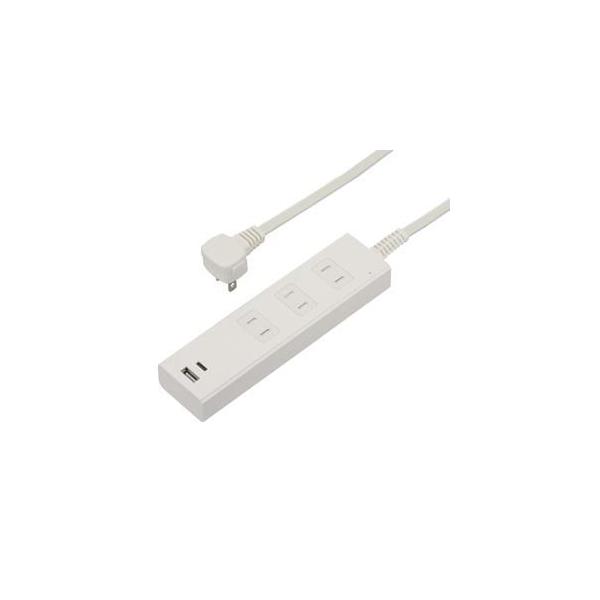 オーム電機 HS-TKU32PD23-W 3個口タップ 雷ガード PD対応Type-C Type-Aポート付き 2m ホワイト