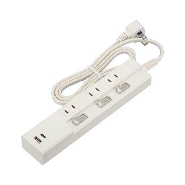 OHM オーム電機 個別スイッチ付節電タップ(3個口/1m/Type-C PD対応 ×1、Type-A×1/LEDランプ付スイッチ/L型プラグ/ホワイト) HS-TPU31PD23-W