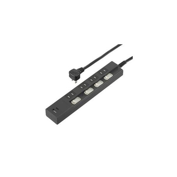 オーム電機 HS-TPKU41PD23-K 4個口節電タップ 雷ガード PD対応Type-C Type-Aポート付き 1m ブラック