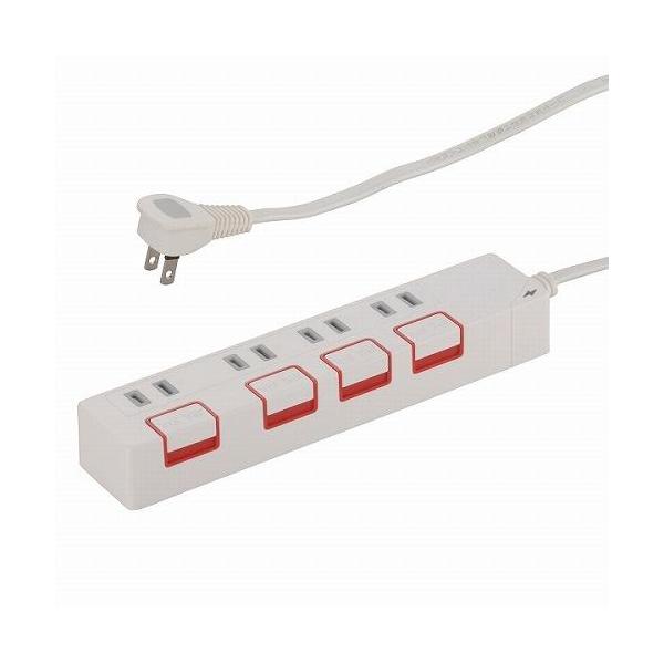 オーム電機(OHM) HS-K1187W 雷ガード&個別押しボタンスイッチ付き 節電タップ 4個口 1.5m 00-1187