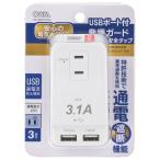 電源タップ 発煙ガードタップ 3個口 USBポート×2 白|HS-TM3U3HT3-W 00-1230 オーム電機