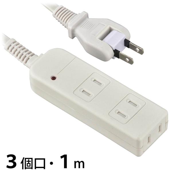 電源タップ 安全タップ 雷ガード 3個口 1m ホワイト|HS-TK31SFW-22 00-1631|OHM(オーム電機)