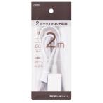 2ポートUSB充電器 2m ホワイト [品番]00-1659