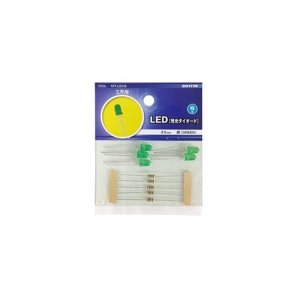 【メール便選択可】オーム電機 KIT-LE5/G LED 発光ダイオード 工作用 φ5mm 緑 5個入 00-1718