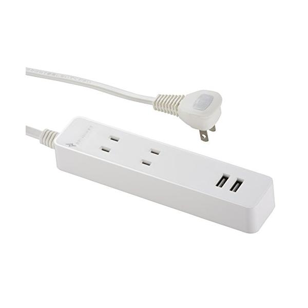 - 商品情報商品の説明USB充電ポート2個(電流容量 合計2400mA)付き主な仕様 15A 125V 1400W以下コンセント:2個口(USB充電ポート出力:2ポート 合計2.4A)耐トラッキングカバー付本体材質:難燃性PC、本体色 白コード長:1m