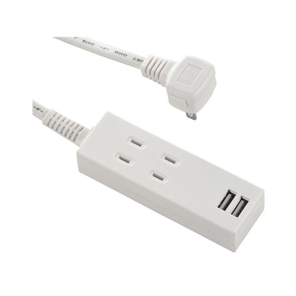 OHM オーム電機 USB充電ポート2口付きタップ 2個口 コード長2m(ホワイト)