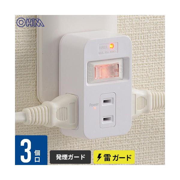 オーム電機 発煙ガードスイッチ付タップ 3個口 HS-TMP3HS3-W