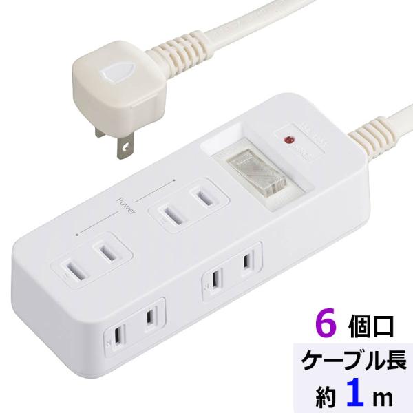 発煙ガード・雷ガード・スイッチ付安全タップ(6個口/1m/ホワイト)_00-5347_HS-TP61HS3-W_OHM(オーム電機)