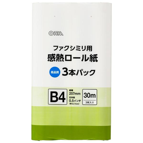 オーム電機 OA-FTRB30T 感熱ロール紙 ファクシミリ用 B4 芯内径0.5インチ 30m 3本パック [品番]01-0732