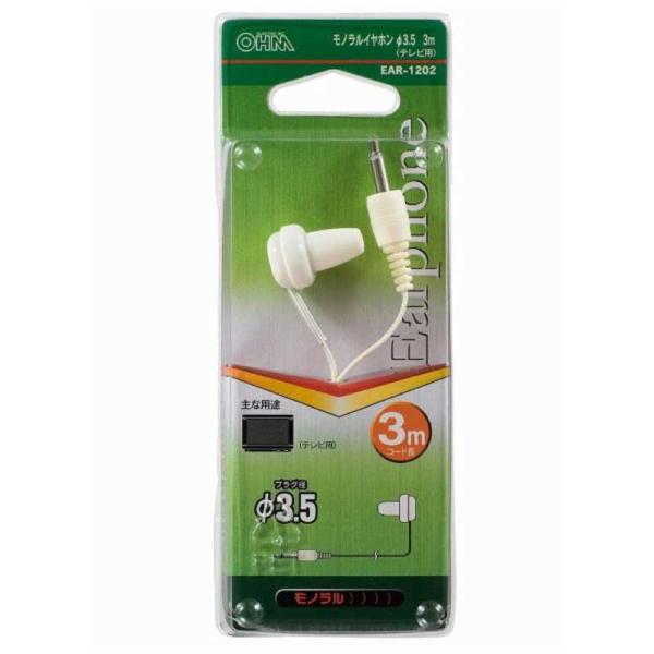 オーム電機 モノラルイヤホン カナル型 ホワイト 3m [φ3.5mm ミニプラグ] EAR-1202