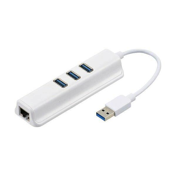 OHM オーム電機 USB Type-Aコネクタ接続 GigaLAN+USB3.2 Gen1×3ポートハブ(ホワイト) PC-SH3PL09-W