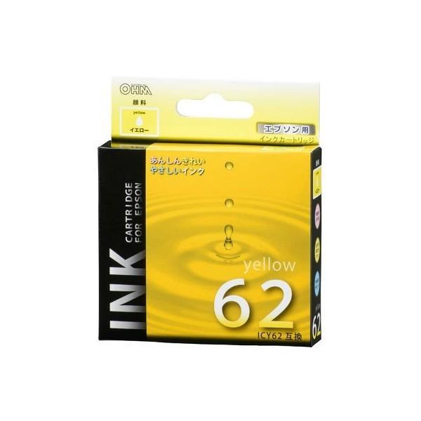 オーム電機 エプソン ICY62互換 顔料イエロー×1 INK-E62B-Y 01-4106