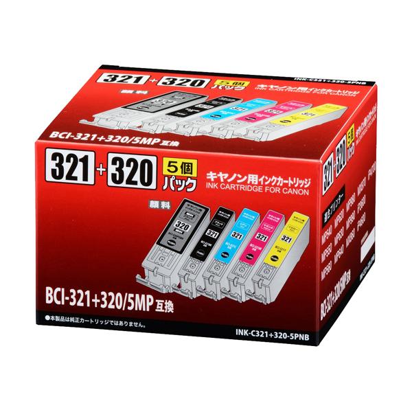 OHM オーム電機 キヤノン用インクカートリッジ BCI-321+320/5MP互換 顔料ブラック+染料4色パック INK-C321+320-5PNB