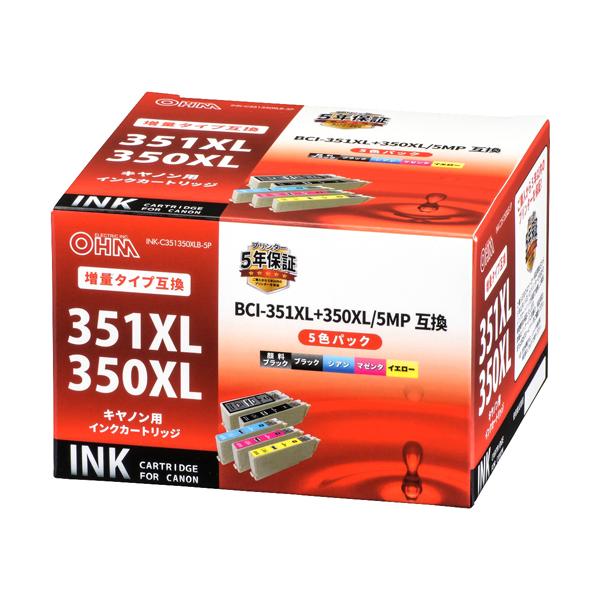 OHM オーム電機 キヤノン用インクカートリッジ BCI-351XL+350XL/5MP互換 顔料ブラック+染料4色パック INK-C351350XLB-5P