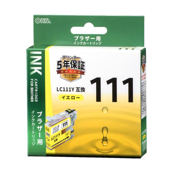 OHM オーム電機 ブラザー用インクカートリッジ LC111Y互換 染料イエロー INK-B111B-Y