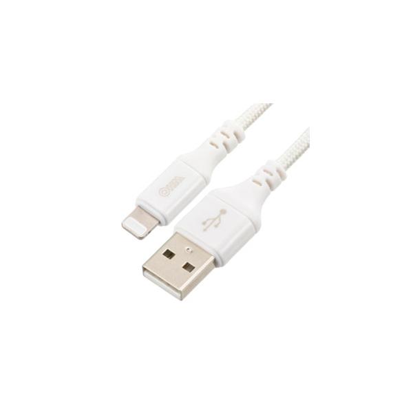 【メール便選択可】オーム電機 断線に強い ライトニングケーブル USB TypeA Lightning 1.8m 白