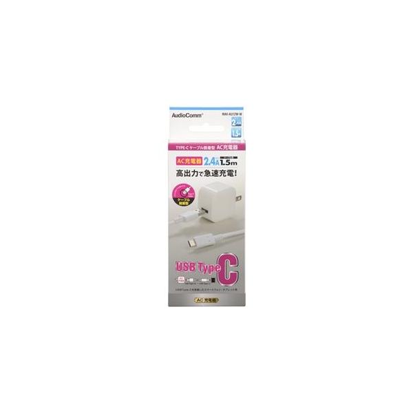 オーム電機 AudioCommAC充電器 TypeCケーブル脱着型 2.4A 1.5m MAV-AU12W-W