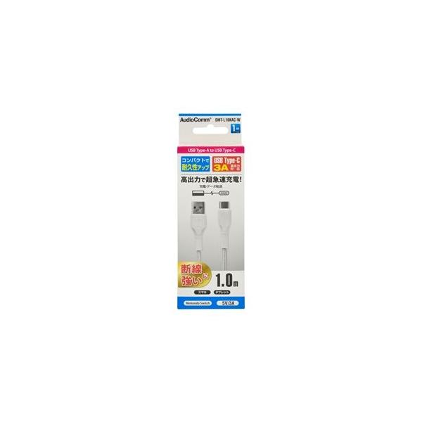 オーム電機 AudioComm Type-Cケーブル USB-A to USB-C 1m ホワイト SMT-L10KAC-W