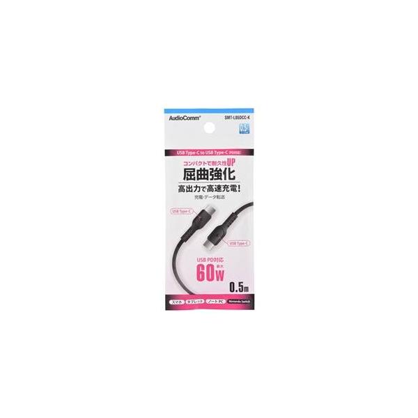 【メール便選択可】オーム電機 SMT-L05DCC-K PD60W対応 USB Type C to Cケーブル USB 0.5m黒