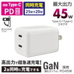 AudioComm PD対応 AC充電器(Type-C+Type-C搭載)|MAV-AP45WCC-W 01-7368 オーム電機