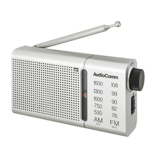 AudioComm AM/FMハンディラジオ シルバー|RAD-P503S 03-0990 オーム電機