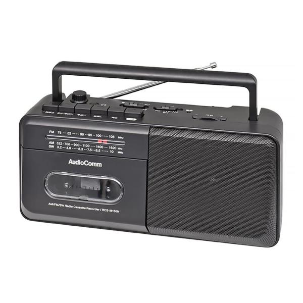 モノラルラジオカセットレコーダ(AM、FM、SWの3バンド受信/カセットテープ再生・録音/ワイドFM/単2形×4本使用/ブラック) RCS-M150N