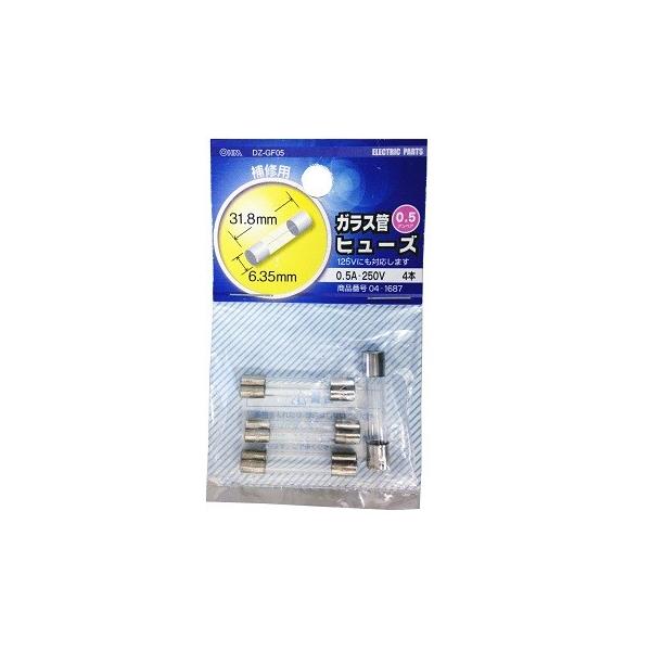 オーム電機 DZ-GF1 ガラス管ヒューズ 1A-250V 4本入 [品番]04-1688 DZGF1