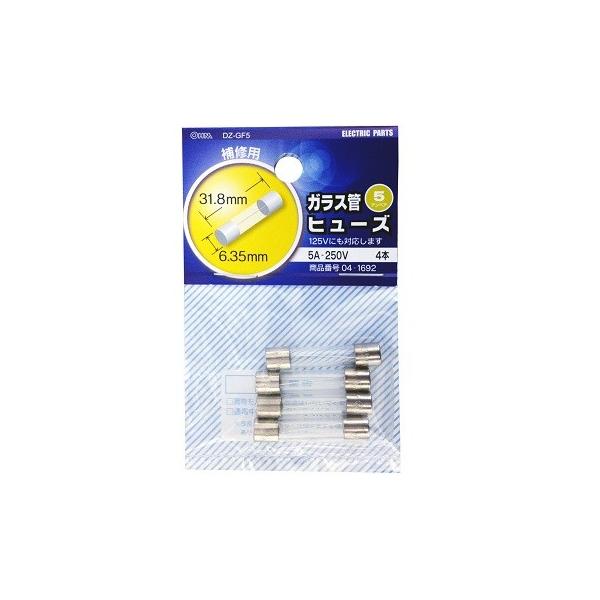 オーム電機 DZ-GF5 ガラス管ヒューズ 5A-250V 4本入 [品番]04-1692 DZGF5