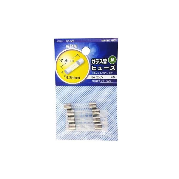 オーム電機 DZ-GF8 ガラス管ヒューズ 8A-250V 4本入 [品番]04-1695 DZGF8