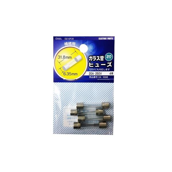 オーム電機 DZ-GF20 ガラス管ヒューズ 20A-250V 4本入 [品番]04-1698 DZGF20