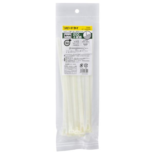 オーム電機 リピートタイ200白-10P [品番]04-3302【メール便・定形外郵便にて発送】