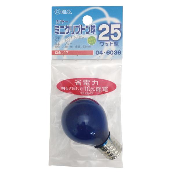オーム電機 LB-S3725K-CA カラーミニクリプトン球 25形相当 S-35 E17 ブルー [品番]04-6036