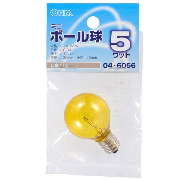 白熱球 ミニボール形 E12 5W G30 イエロー_LB-G3205-CY 04-6056 オーム電機