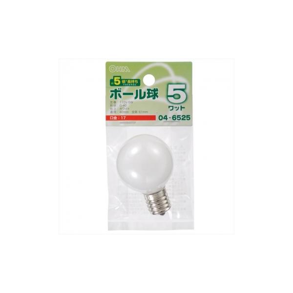 オーム電機 ボール球 G40 E17/5W ホワイト [品番]04-6525 LB-G4705-WLL