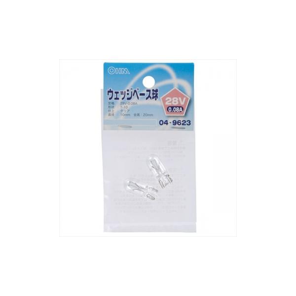 オーム電機 LB-W28008A ウェッジベース球 T-10タイプ 28V/0.08A [品番]04-9623【メール便・定形外郵便にて発送】