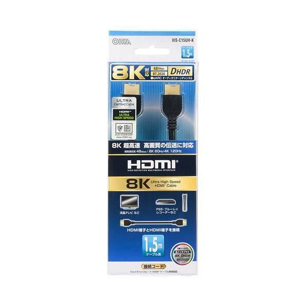 OHM オーム電機 HDMIケーブル 8Kウルトラハイスピード 1.5m VIS-C15UH-K 05-0544